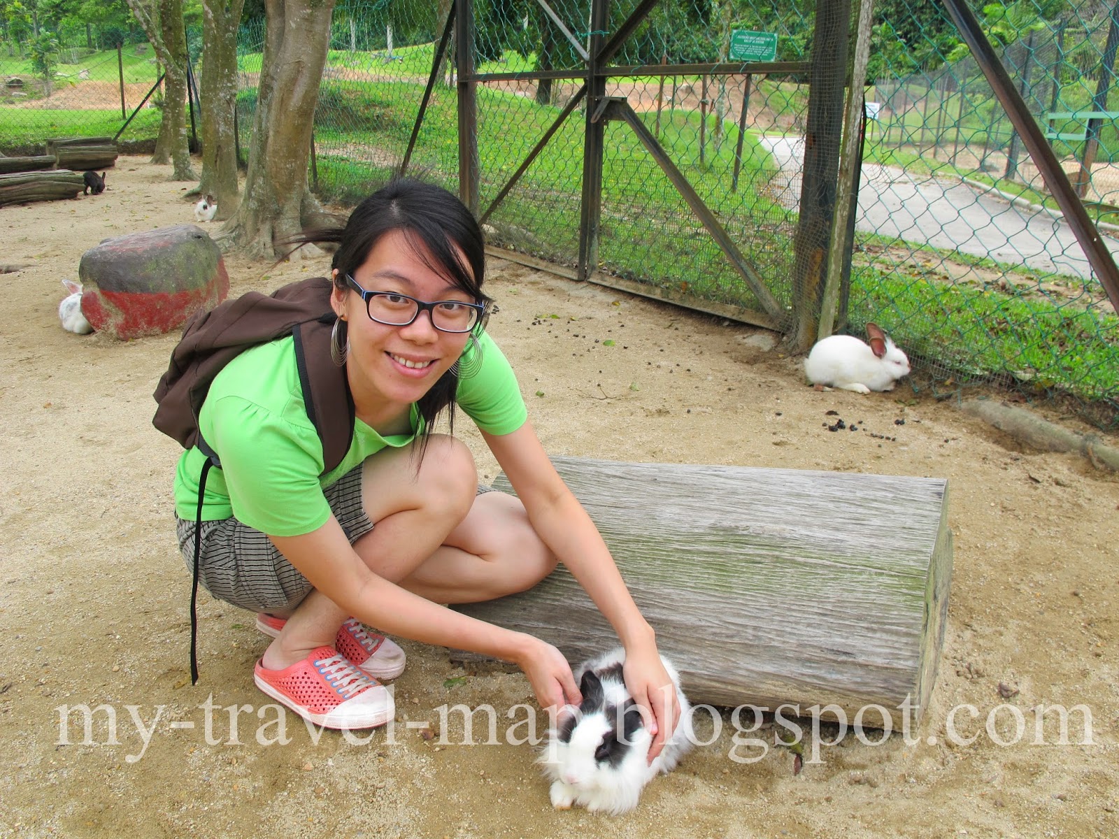 法國村的票是不包括Animal Park的,所以得另付RM3的入場費。顧名思義Animal Park是一個小型動物園,可是我倒覺得還是用回Rabbit Farm較好,因為裡頭依然是以兔子為主,而當中,除了兔子還有花鹿及驢子。可是我倒被這兒的兔子給吸引著。很多品種的兔子都能在這兒找到。除了平時看到的短毛兔之外,也有長毛的,有些毛髮只長在下巴,有些就全身毛鬆鬆的,即吸引小孩子也逗得大人開心。這裡有接近200只兔子,可是放出來自由蹦跳的就不多,應該只有20-30只,其他的都關在籠子裡。它們一點也不怕陌生人,看到你坐在那裡就會蹦跳蹦跳的圍繞在你的身邊,有些還活躍得跳上你的大腿期待你給它食物。相反地,被人所忽略的花鹿及驢子就顯得孤單可憐,只要你走近花鹿,他們就會成群逃跑,而驢子更不用說了,它的唯一責任就是讓人騎,只要有人付錢,它就可以暫時脫離被捆綁在柱子的命運。